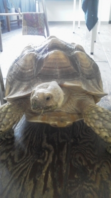 陸ガメのつよし君は、「つよし~!」と呼ぶと逆の方向を